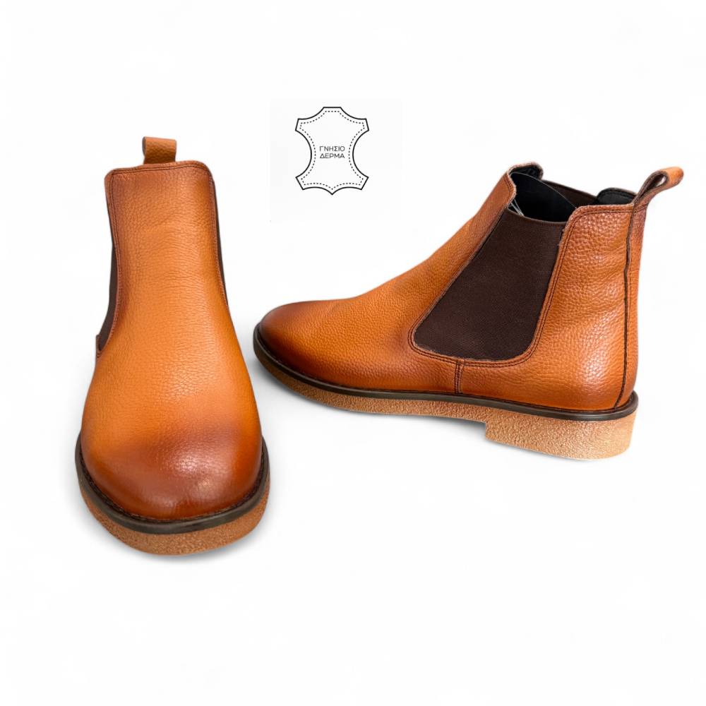 Ανδρικό δερμάτινο μποτάκι με λάστιχο στο πλάι ταμπά