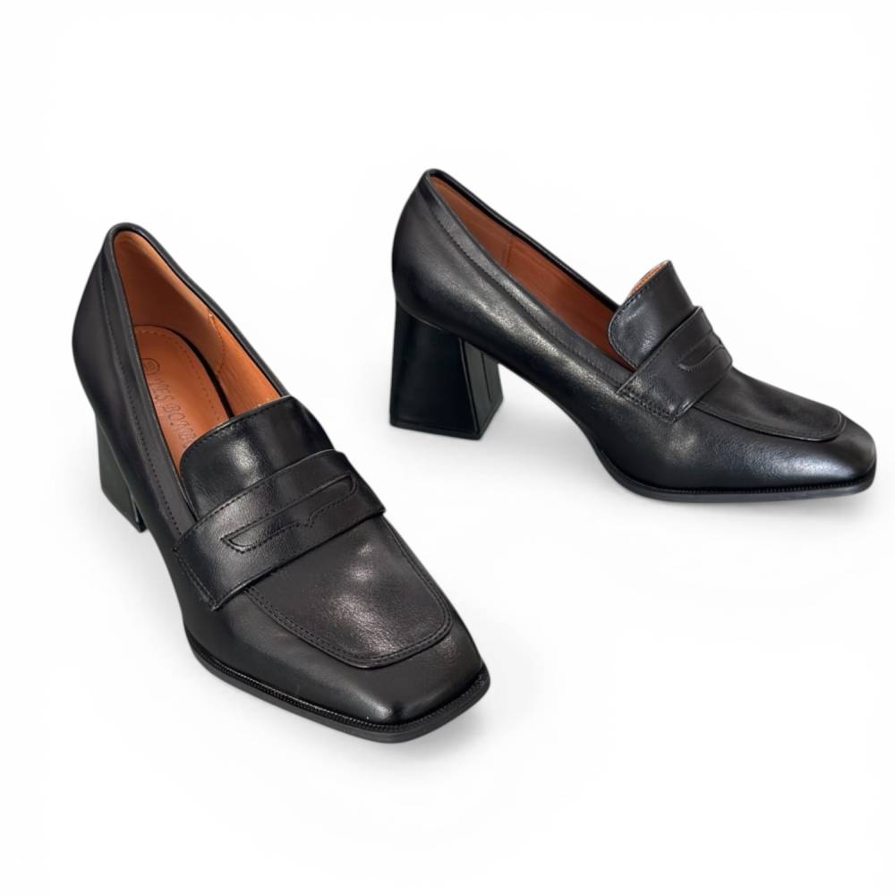 Γόβα/loafers με τετράγωνο τακούνι μαύρο -