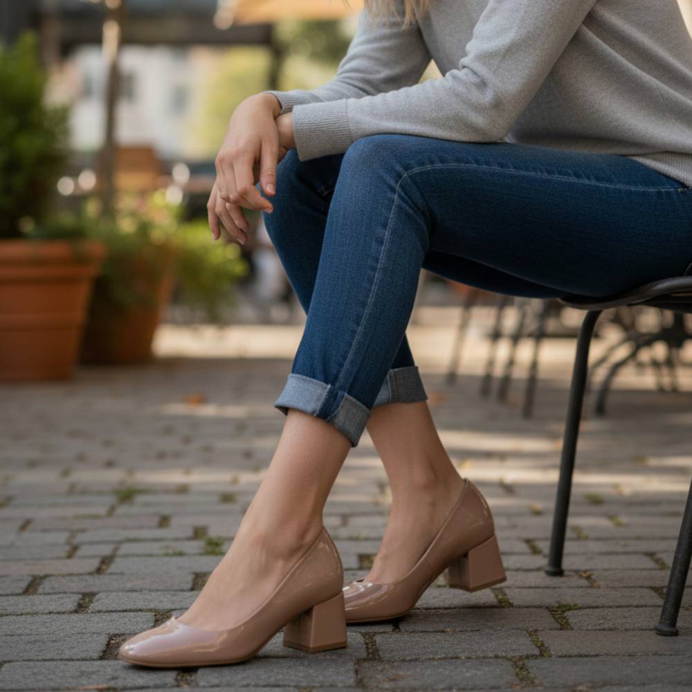 Γόβα λουστρίνι με φαρδύ τακούνι