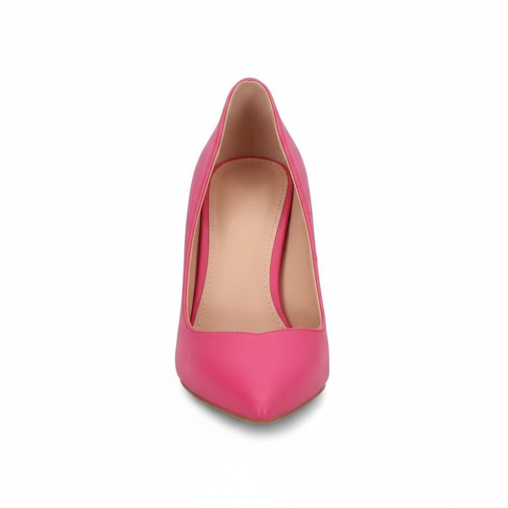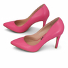Γόβες δερματίνη σε φούξια χρώμα. Ψηλό λεπτό τακούνι. Μυτερό τελείωμα.