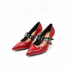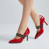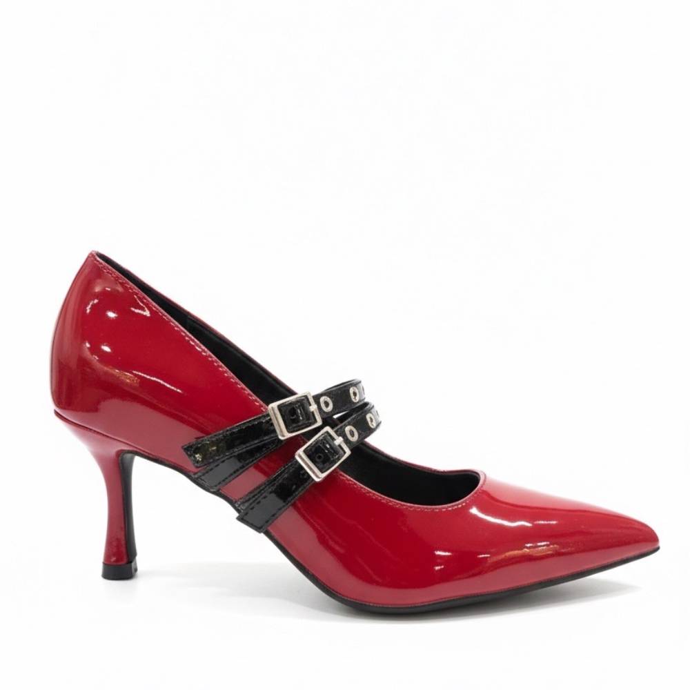Γόβες λουστρίνι Joalice paris μυτερές με διπλή μπαρέτα κόκκινο.