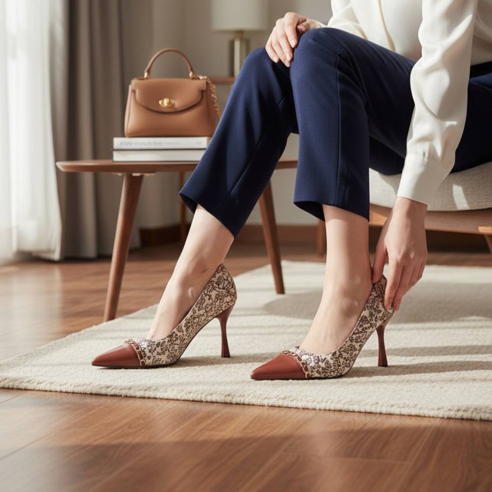 Γόβες μυτερές με λεπτό τακούνι ιδιαίτερο σχέδιο