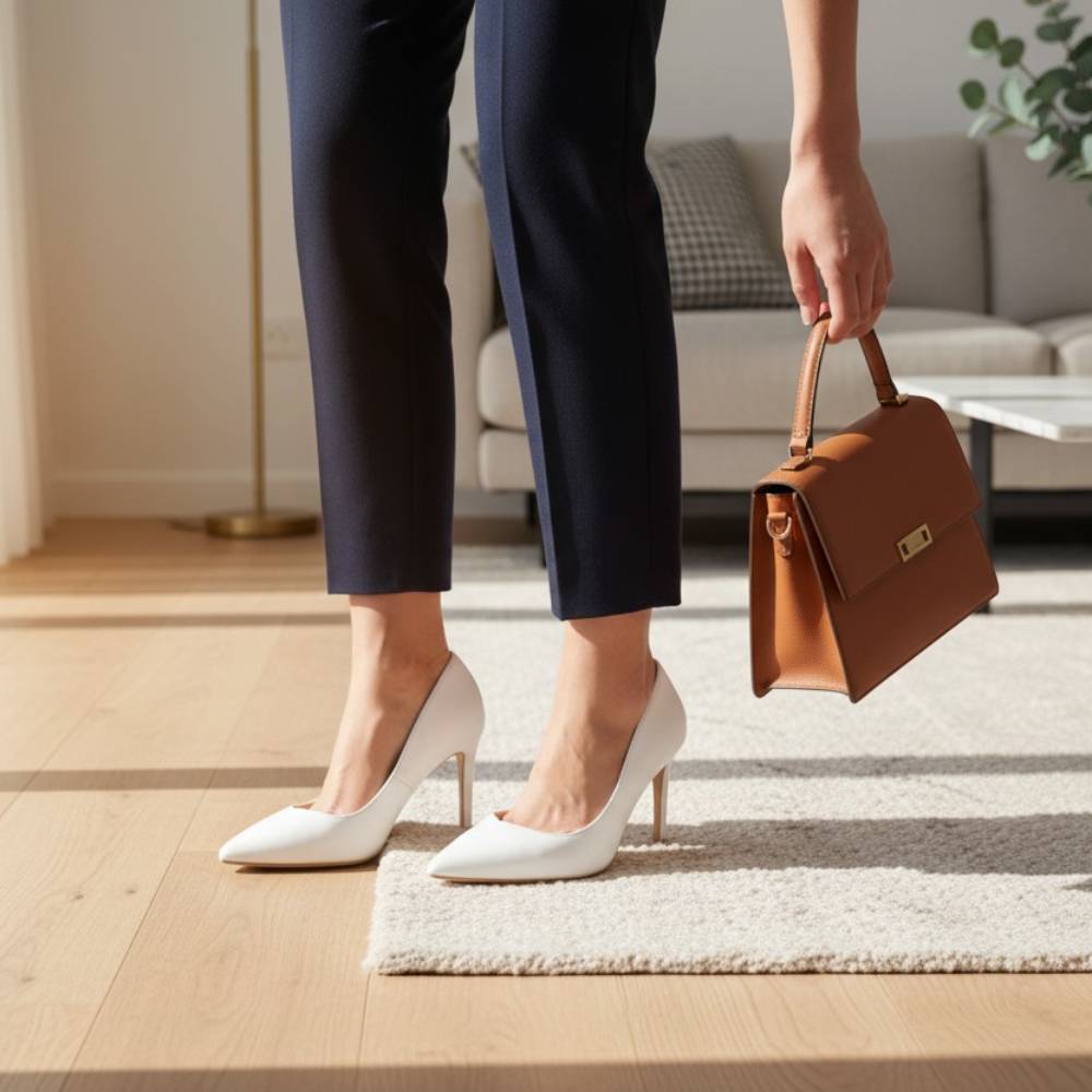 Γόβες μυτερές με λεπτό τακούνι λευκό -