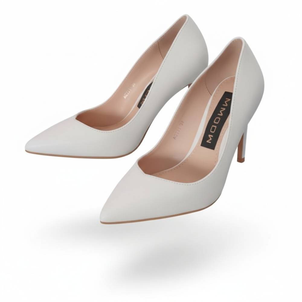 Γόβες δερματίνη σε λευκό χρώμα. Ψηλό λεπτό τακούνι. Μυτερό τελείωμα.