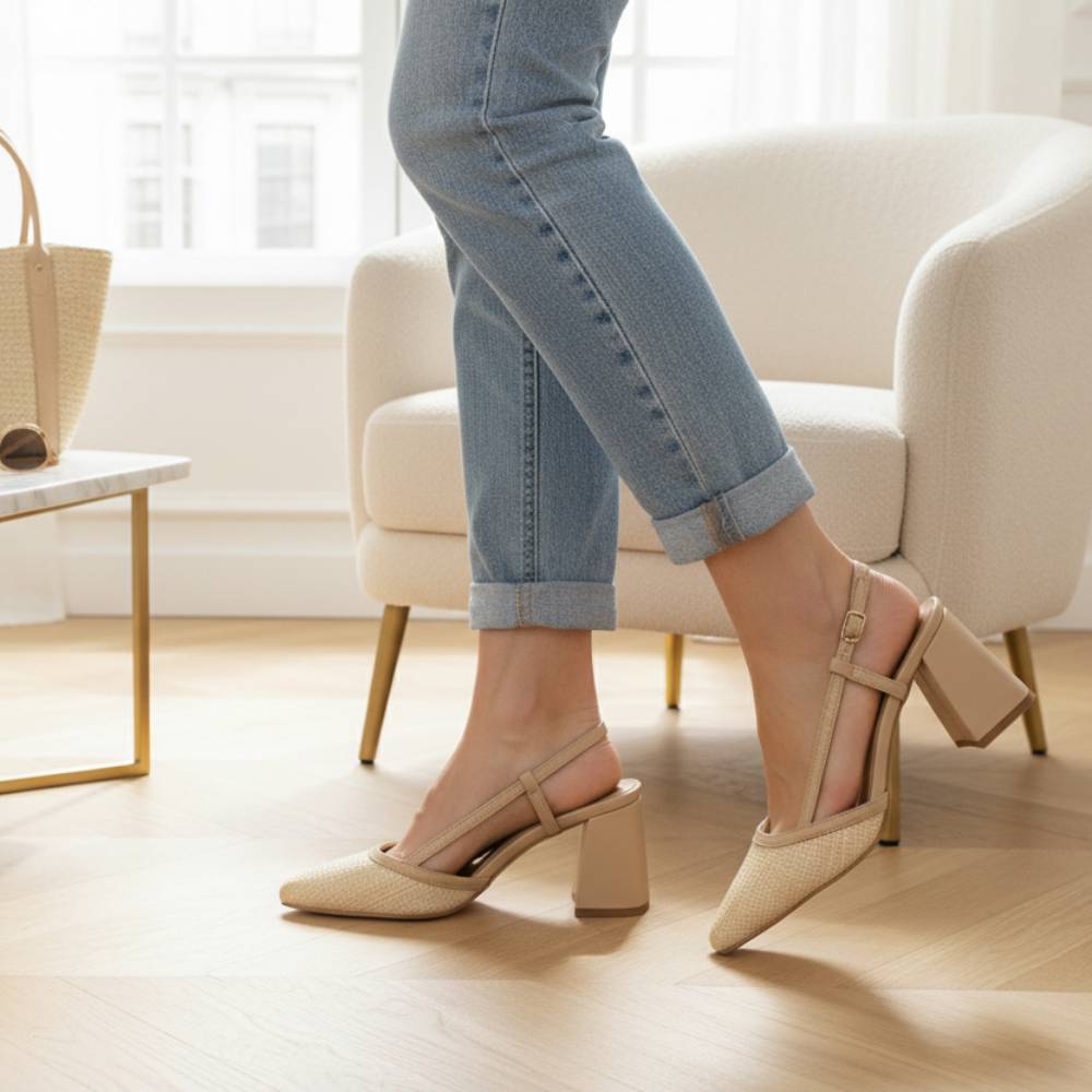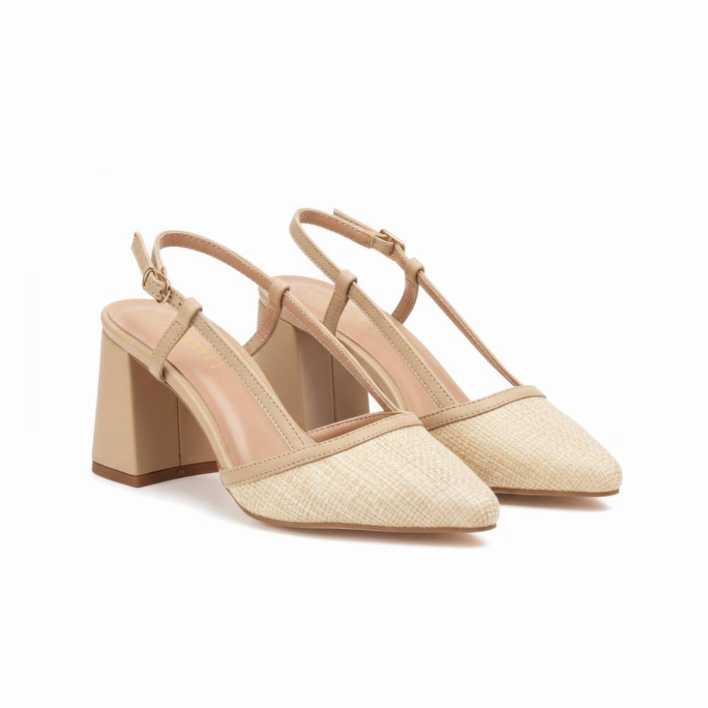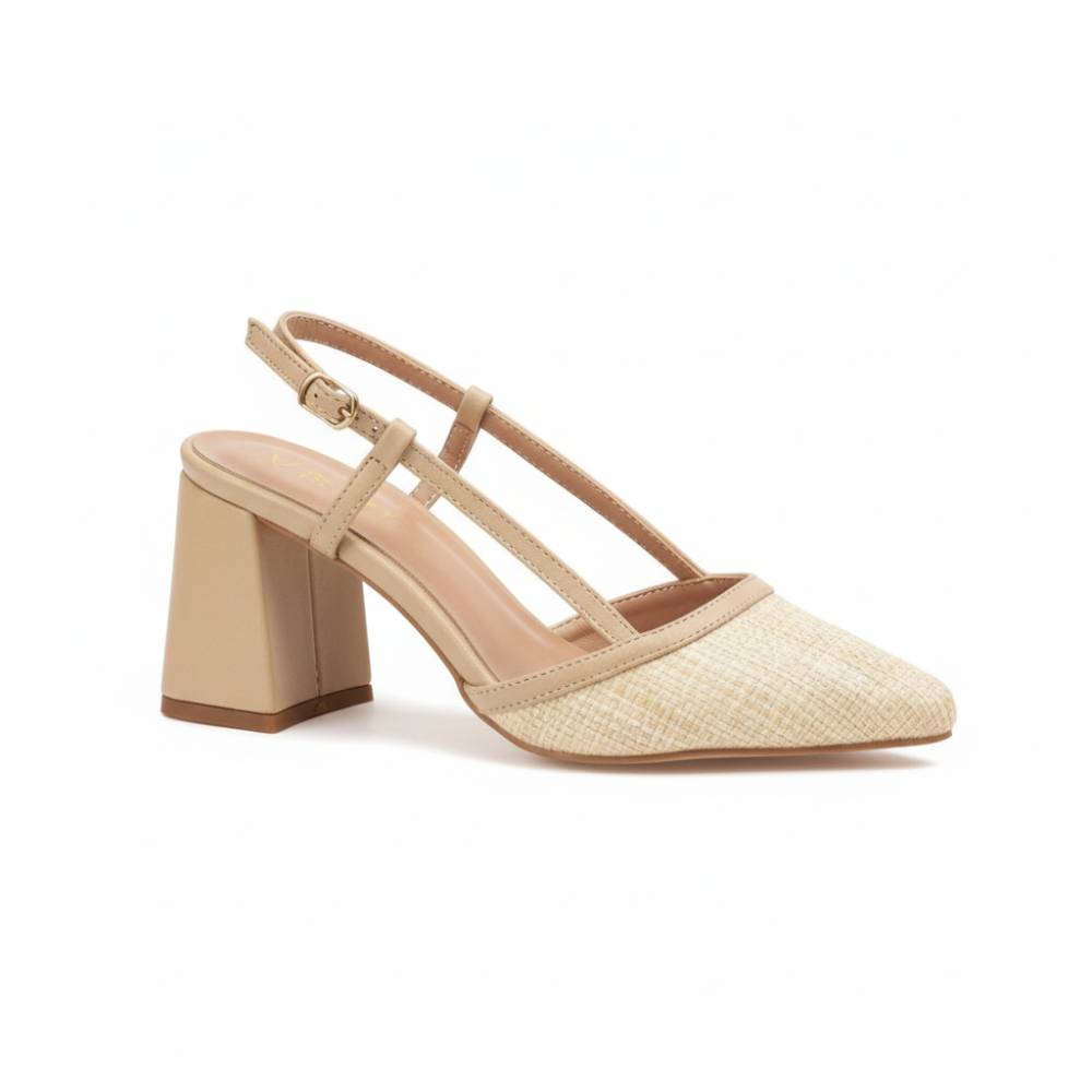 Γόβες verde slingback με χοντρό τακούνι μπέζ