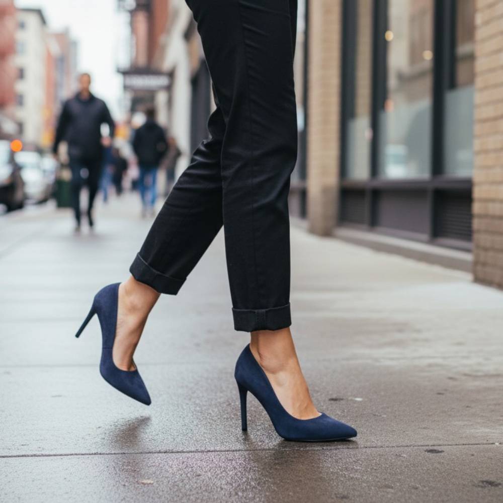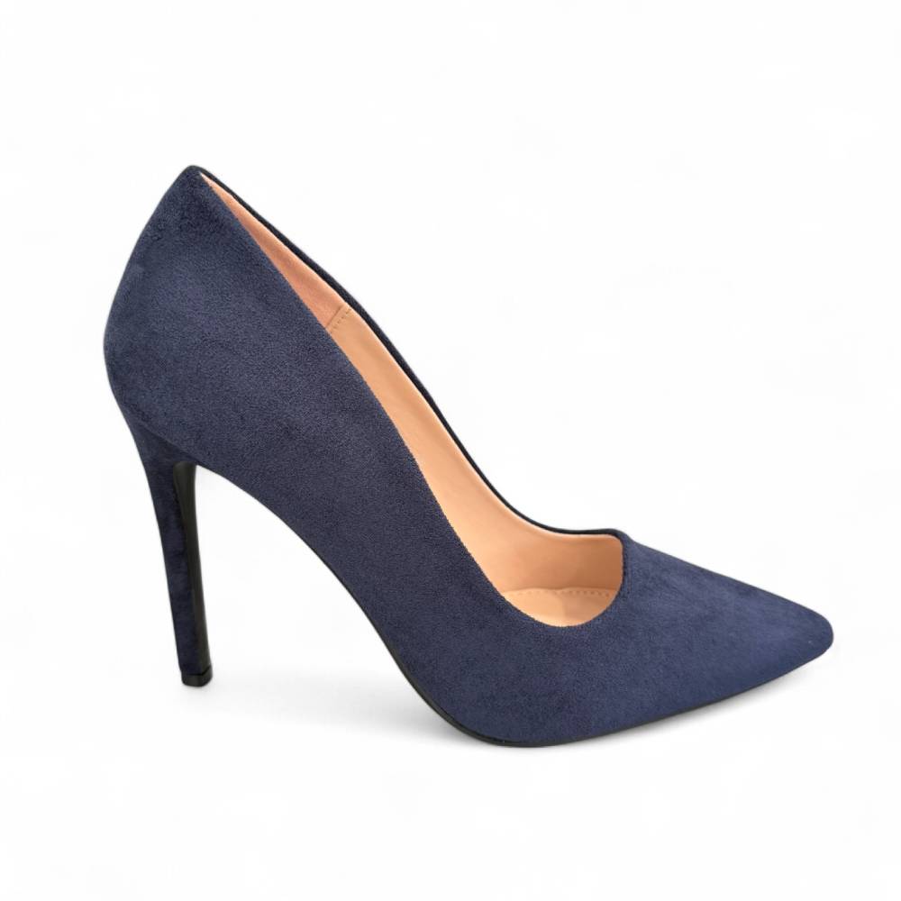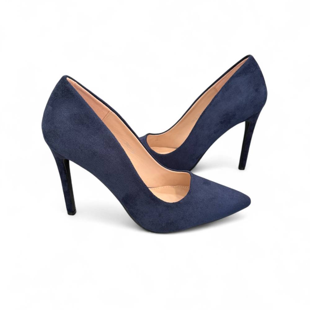 Γόβες suede μυτερές με λεπτό τακούνι navy