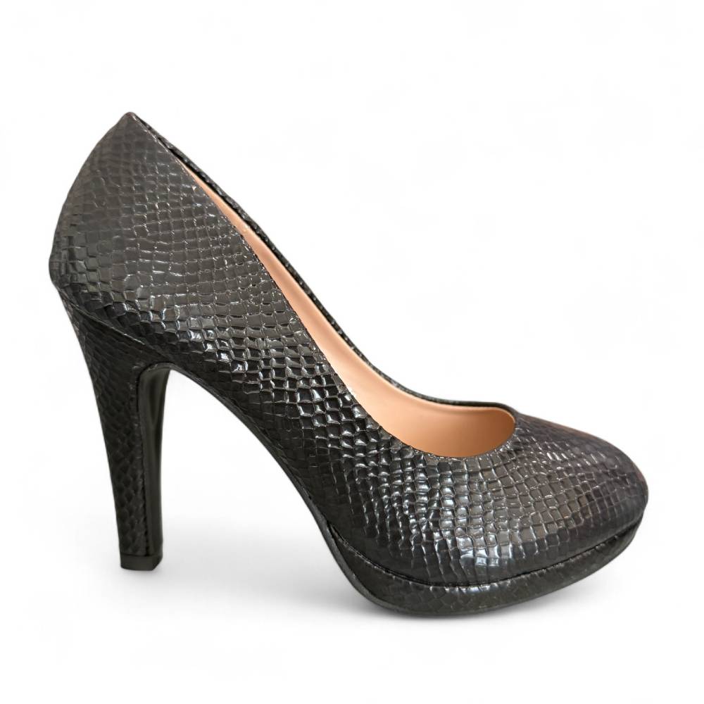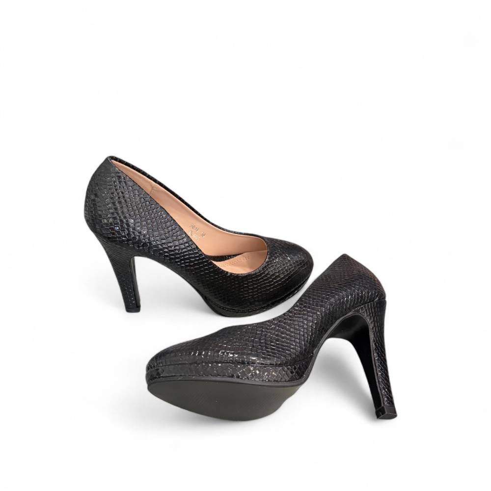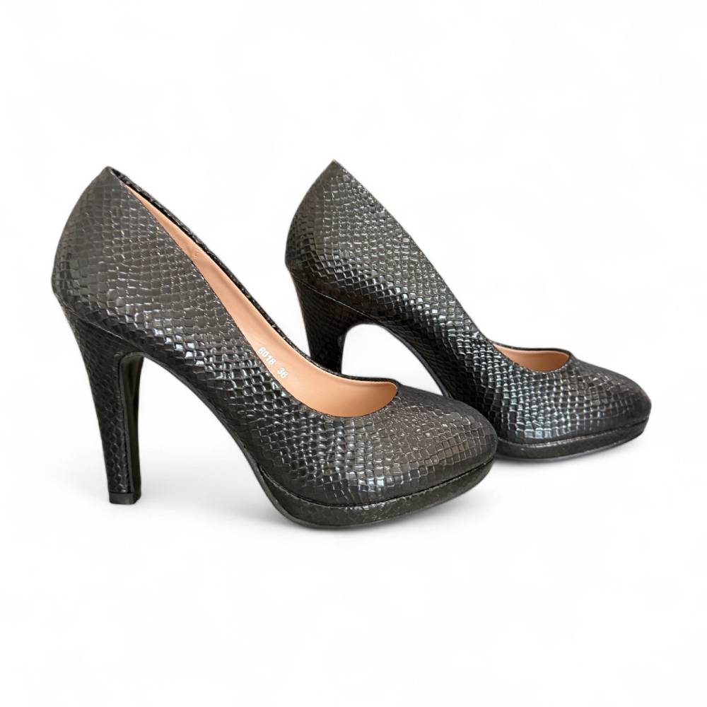 Γυναικείες γόβες από δέρμα croco συνθετικό μαύρο