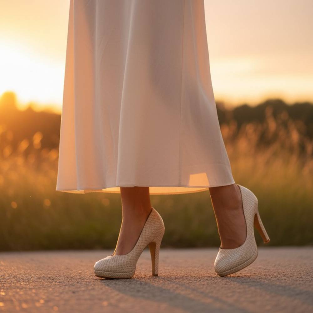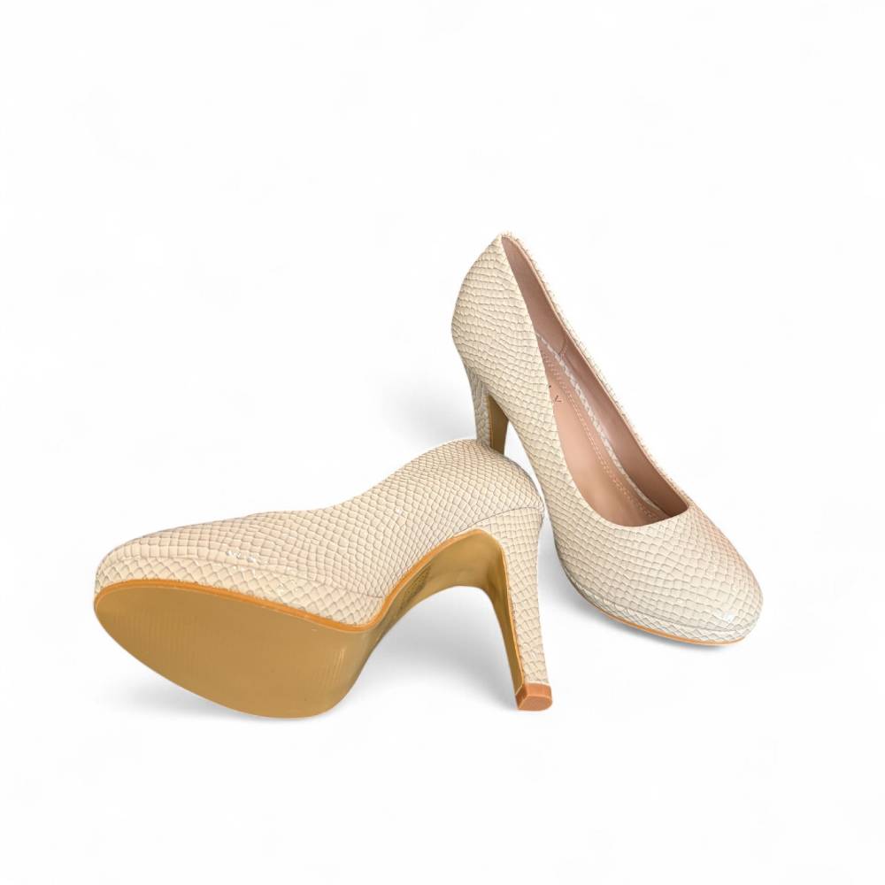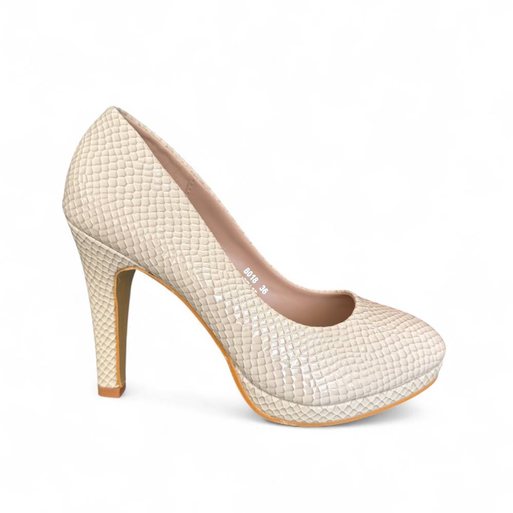 Γυναικείες γόβες από δέρμα croco συνθετικό μπέζ