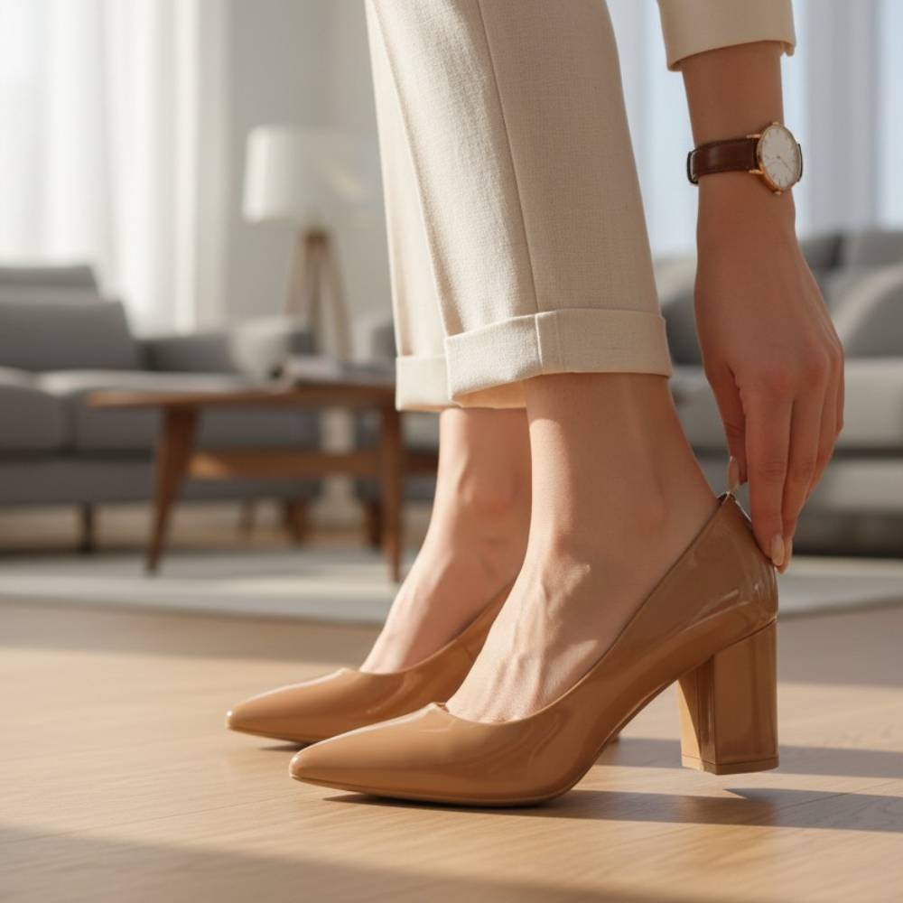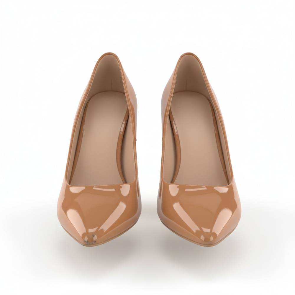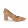 Γυναικείες γόβες λουστρίνι με χοντρό τακούνι μπέζ/ταμπά