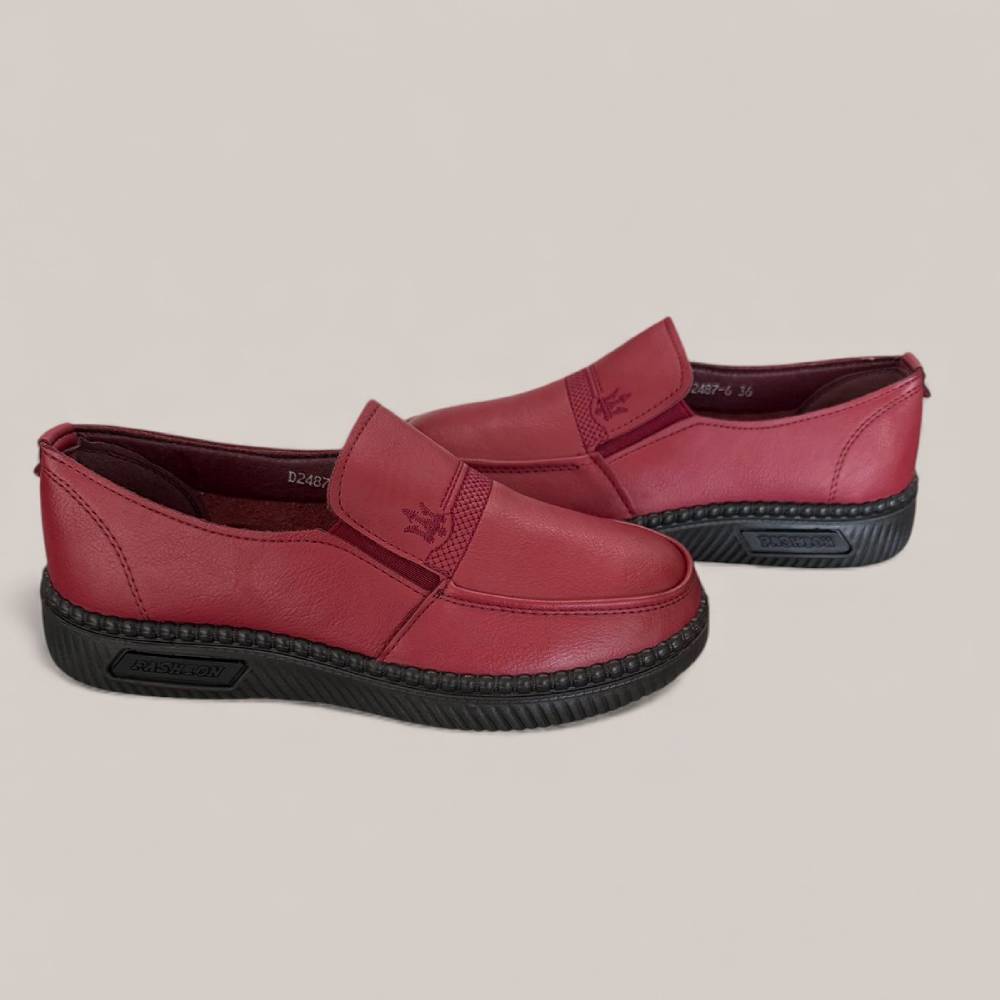 Γυναικεία ανατομικά loafers με λάστιχο μπορντό