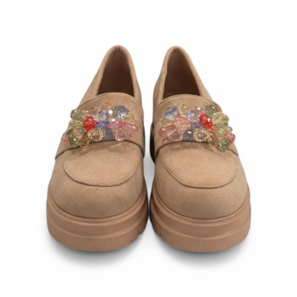 Τα μοκασίνια fashion & bella είναι απίστευτα άνετα, εξασφαλίζοντας άνεση σε κάθε βήμα. Το πάνω μέρος διακοσμημένο με εντυπωσιακές, λαμπερές πέτρες, αποπνέει κομψότητα. Στο εσωτερικό, ένας μαλακός πάτος από οικολογικό δέρμα.