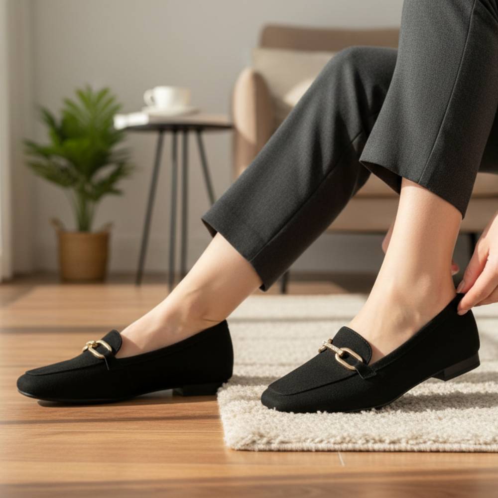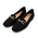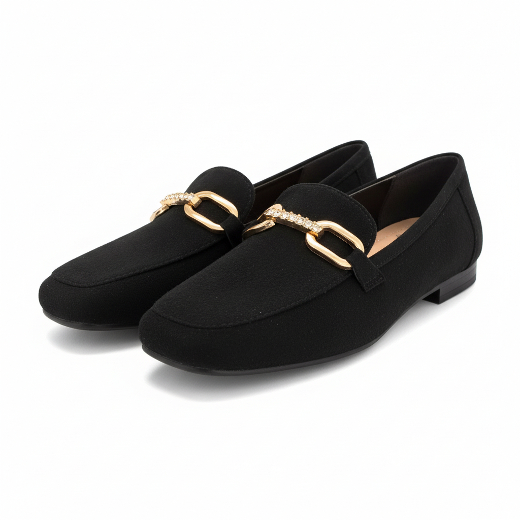 Γυναικεία μοκασίνια suede μαύρα  με χρυσές λεπτομέρειες.