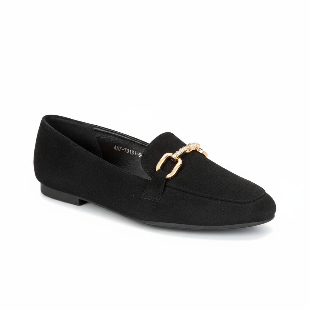 Γυναικεία μοκασίνια suede μαύρα με χρυσές λεπτομέρειες -