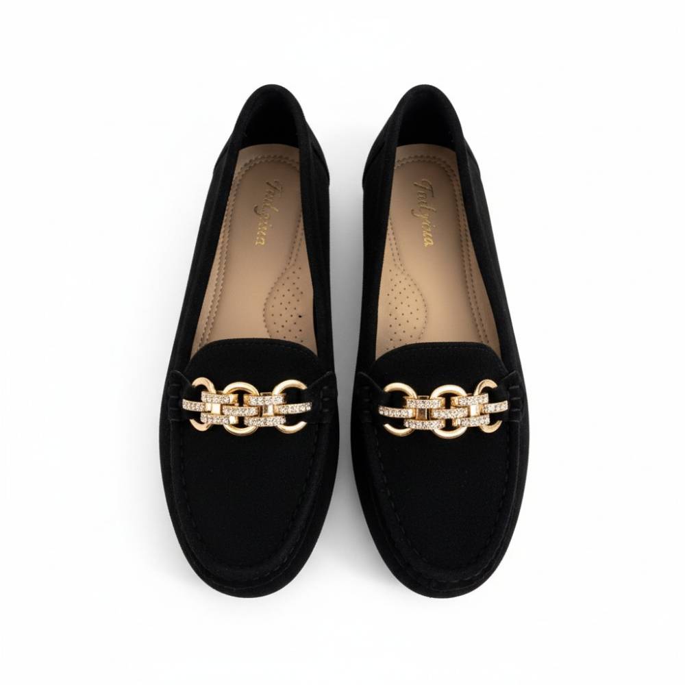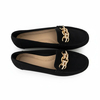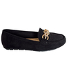 Γυναικεία μοκασίνια suede μαύρα με χρυσή αγκράφα