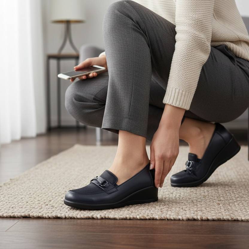 Μοκασίνια με πλατφόρμα και διακοσμητική λεπτομέρεια μπλέ