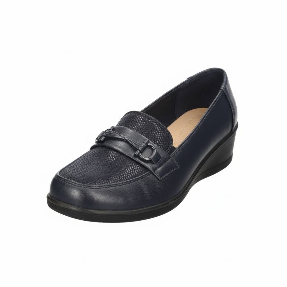 Μοκασίνια με πλατφόρμα και διακοσμητική λεπτομέρεια μπλέ -