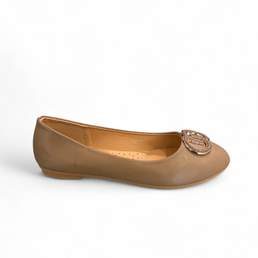 Μπαλαρίνες με αγκράφα και μαλακό πάτο με αντιολισθητική σόλα σε χρώμα πούρου