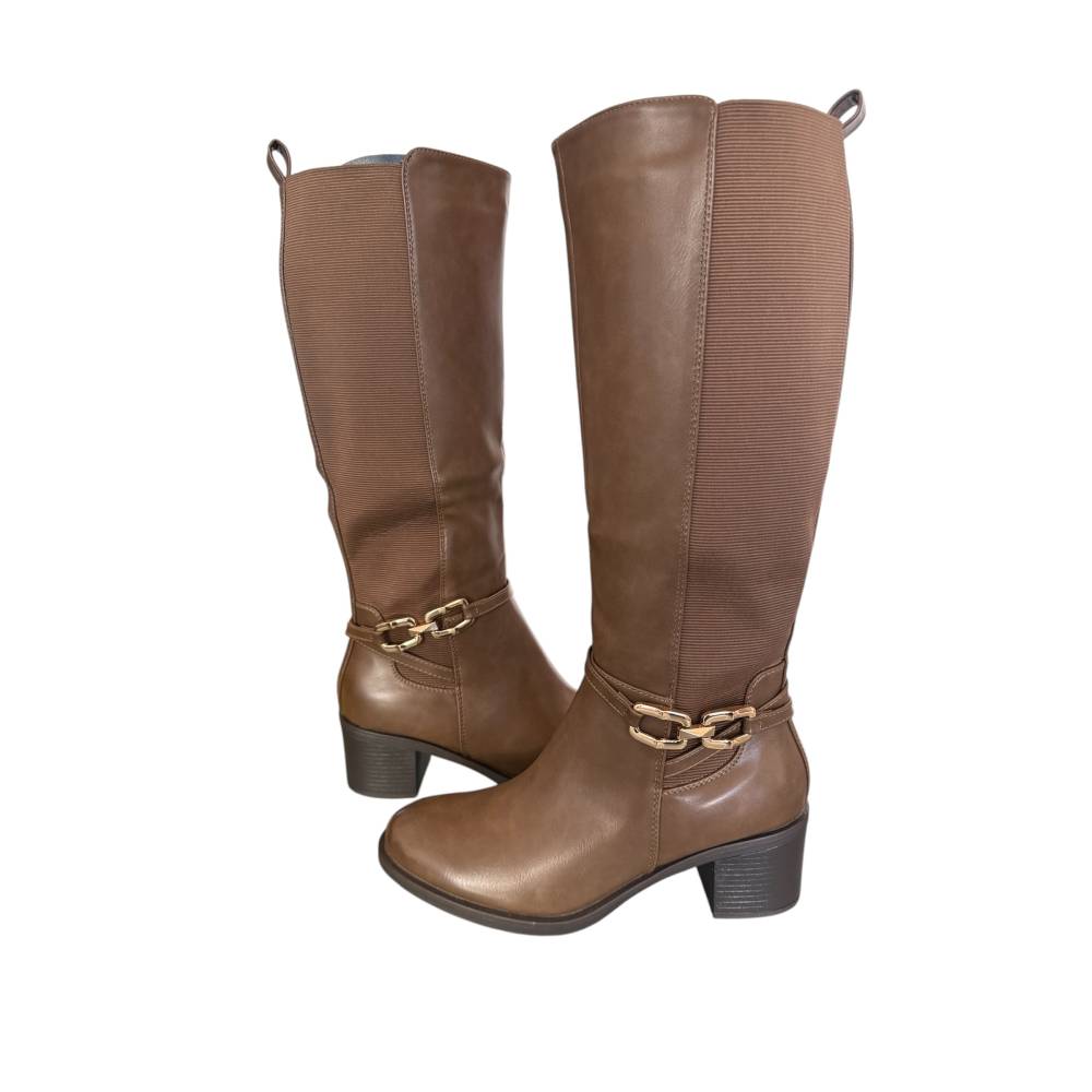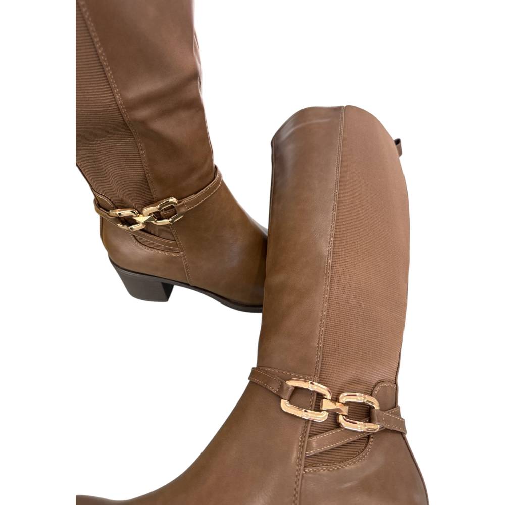Μπότες δερματίνη με λάστιχο και λουράκι με αγκράφα στο πλάι