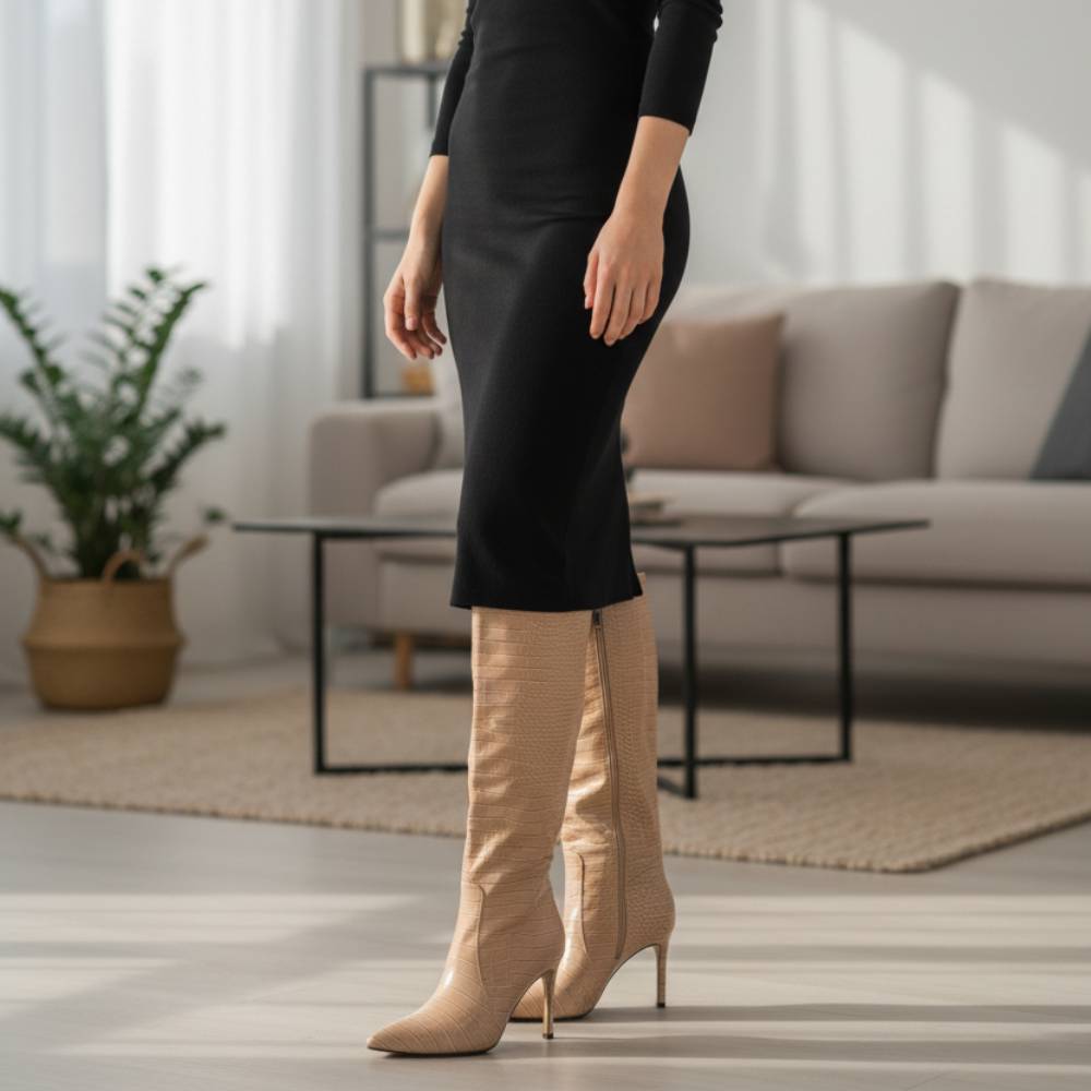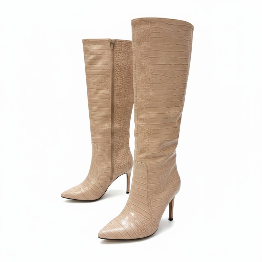 Μπότες με λεπτό τακούνι κροκό μπέζ