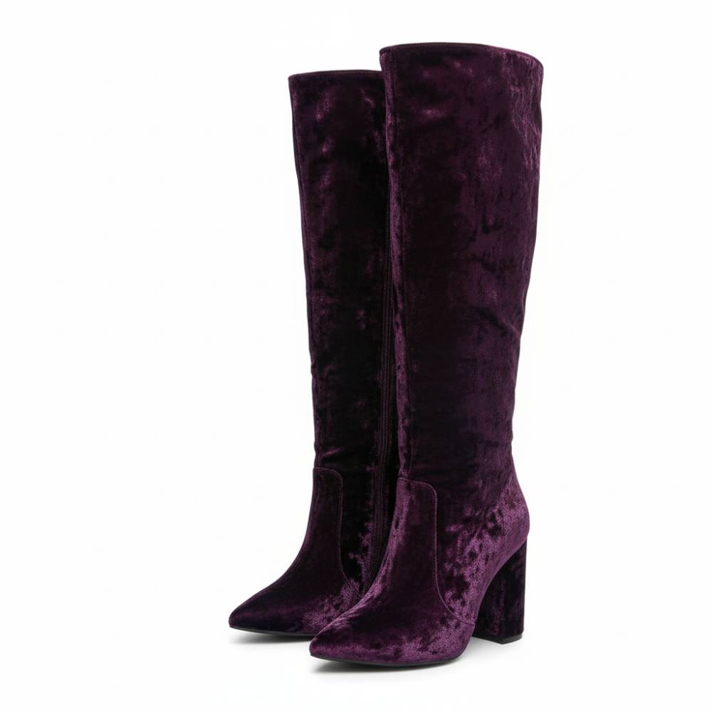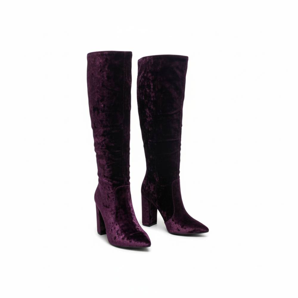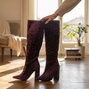 Suede μπότα με χοντρό τακούνι μώβ