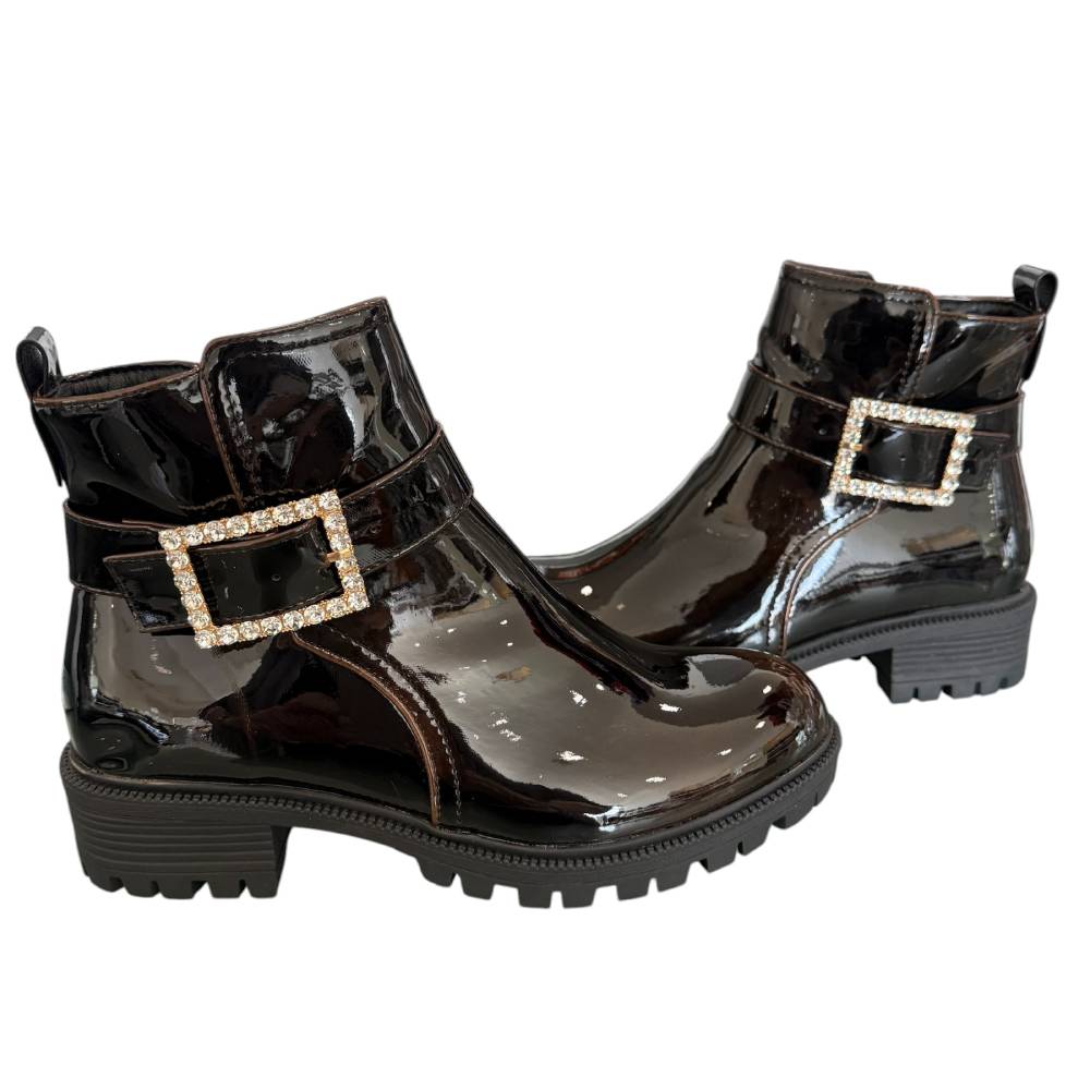 Λουστρίνι μποτάκι με αγκράφα στράς καφέ -