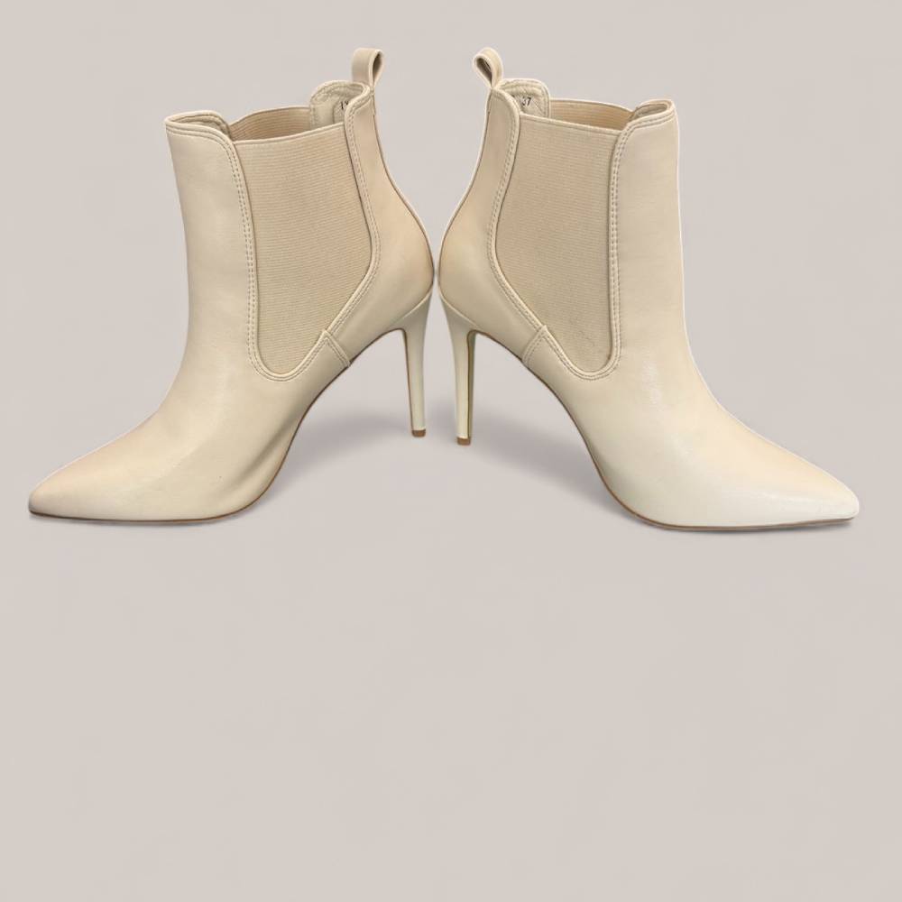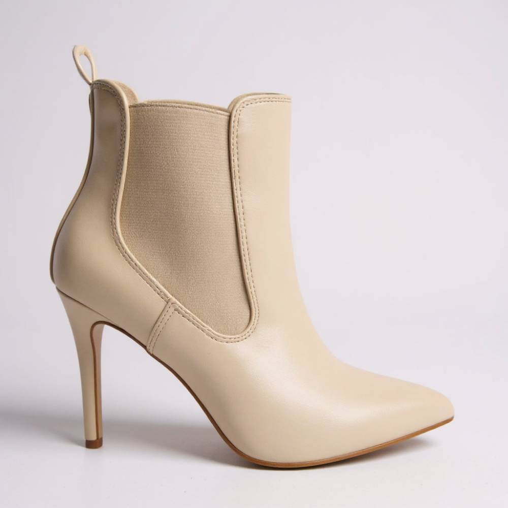 Μποτάκια μπεζ δερματίνη με λάστιχο μυτερά