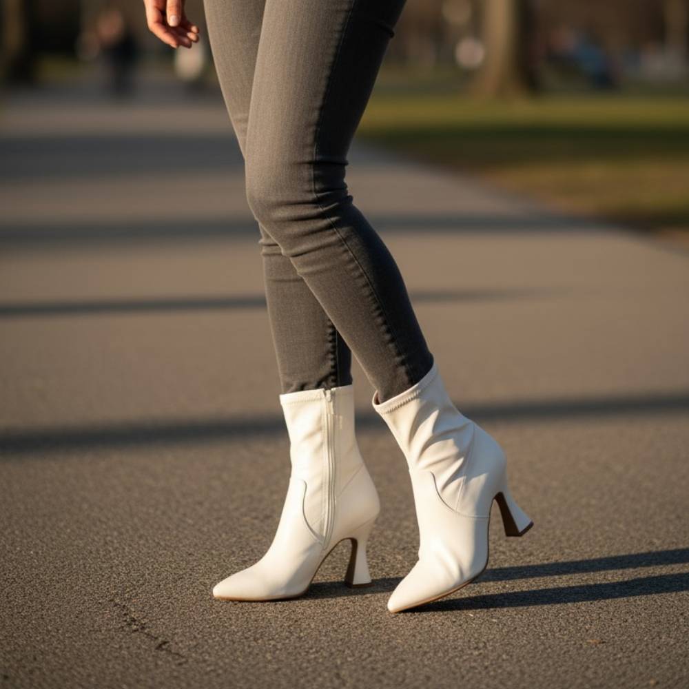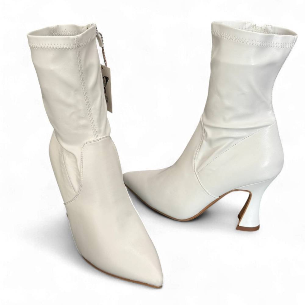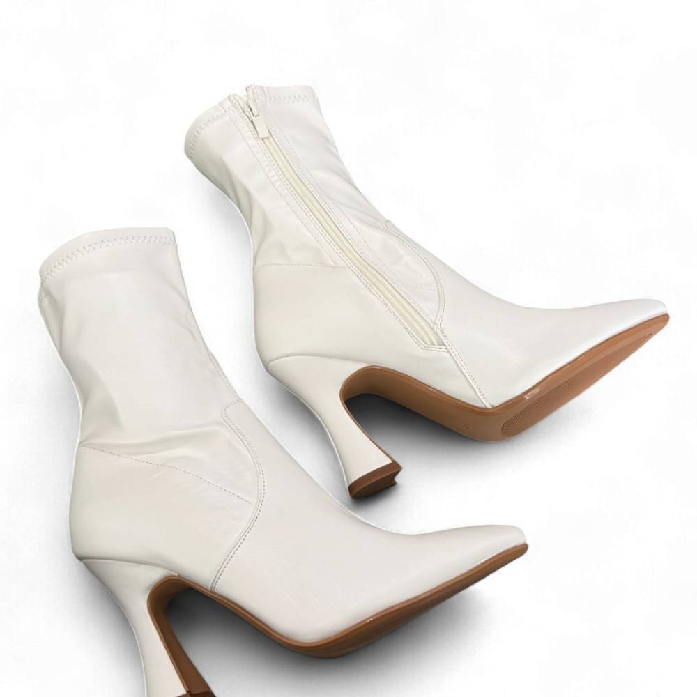 Μποτάκια μυτερά κάλτσα με flare τακούνι. Φερμουάρ στην εσωτερική πλευρά.
