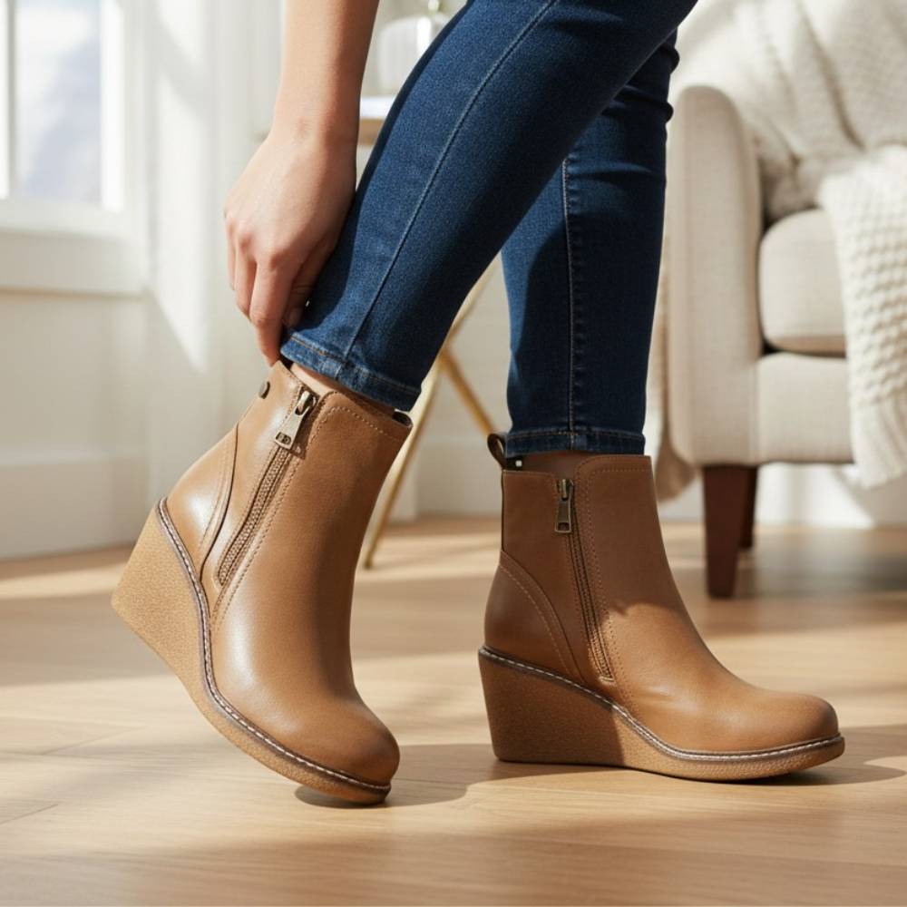 Μποτάκια πλατφόρμα με διακοσμητικό φερμουάρ και ραφές