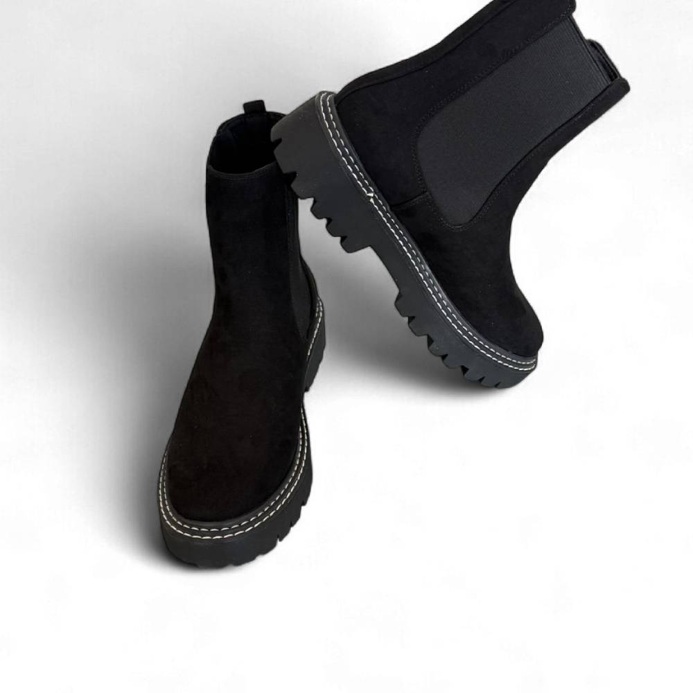 Μποτάκια Suede με ελαστικά πλαϊνά μαύρα