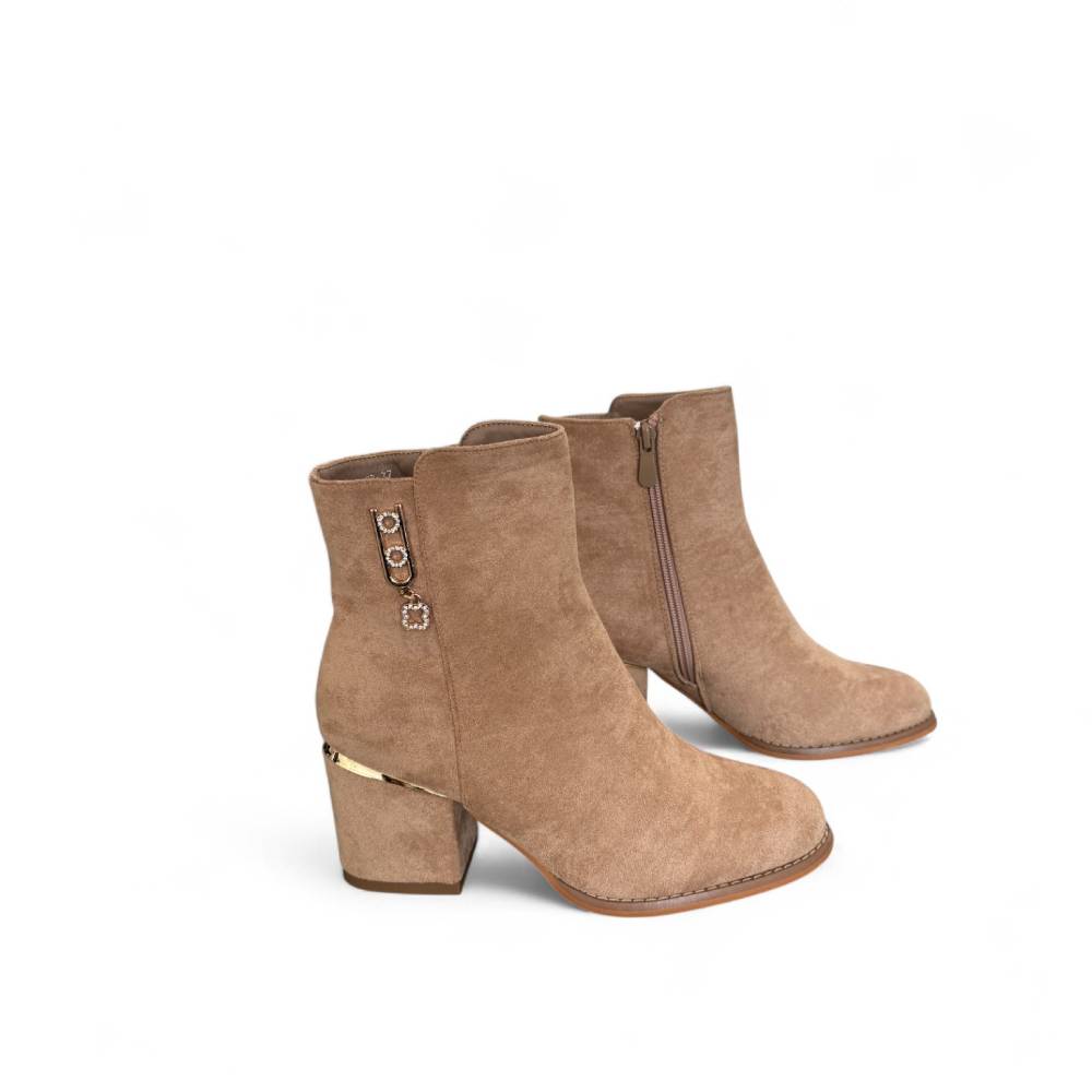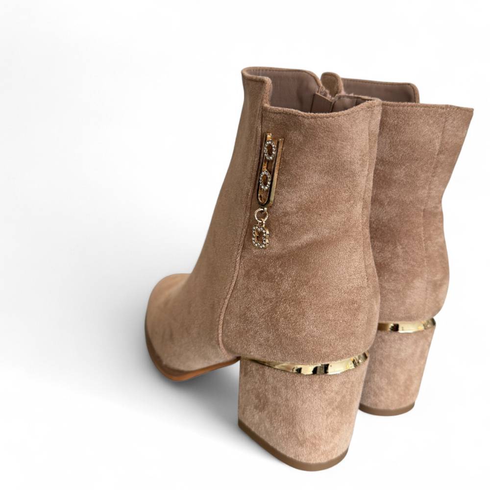 Μποτάκια suede με τετράγωνο τακούνι και strass λεπτομέρειες μπέζ