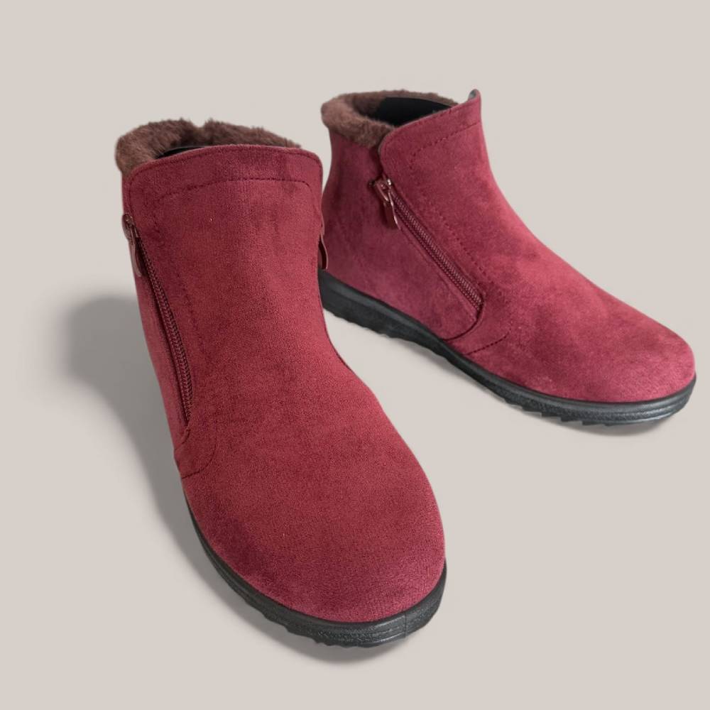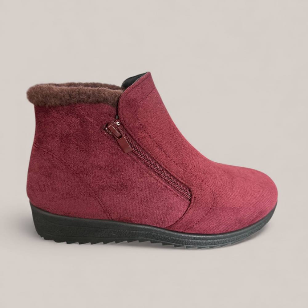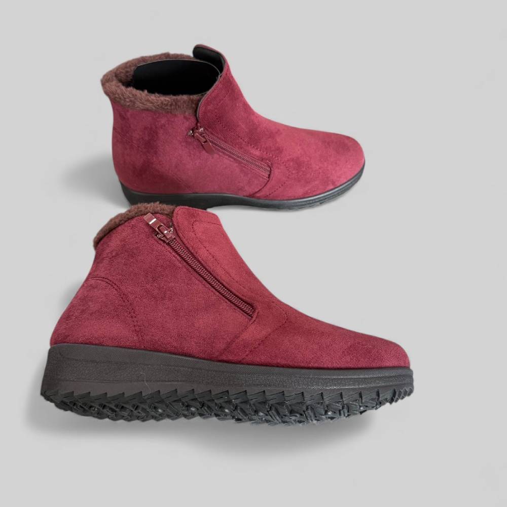 Μποτάκια ανατομικά με γούνα και διπλό φερμούαρ μπορντό
