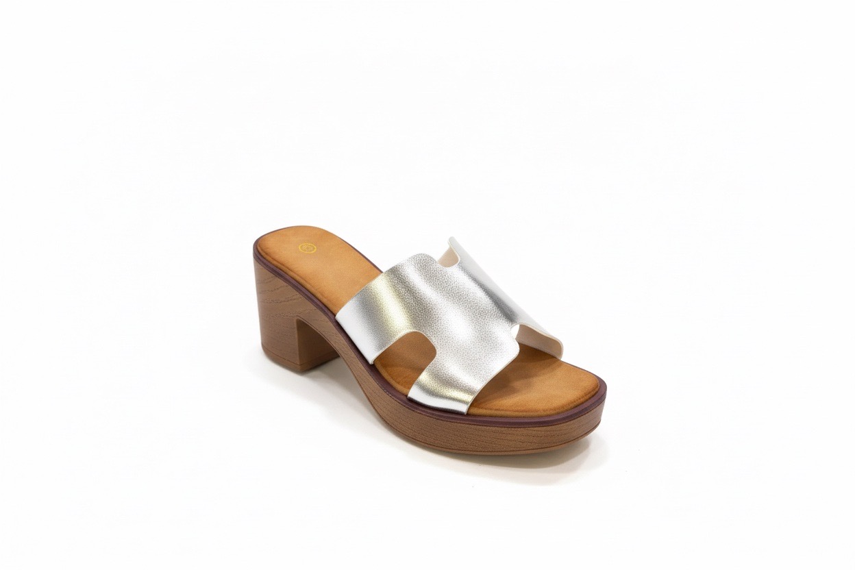 Mules με χοντρό τακούνι ασημί