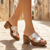 Mules με χοντρό τακούνι ασημί -