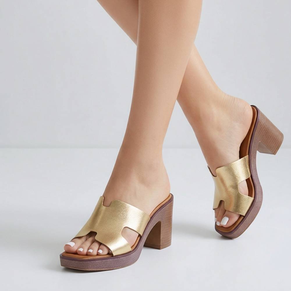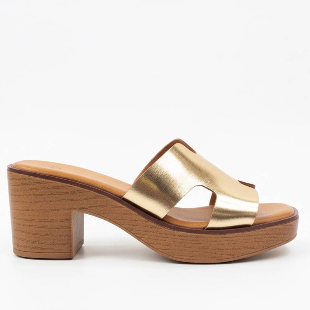 Mules με χοντρό τακούνι χρυσό