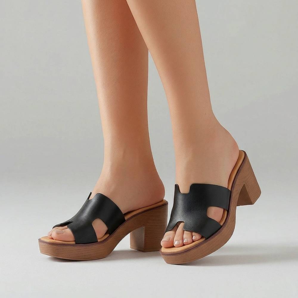 Mules με χοντρό τακούνι μαύρο