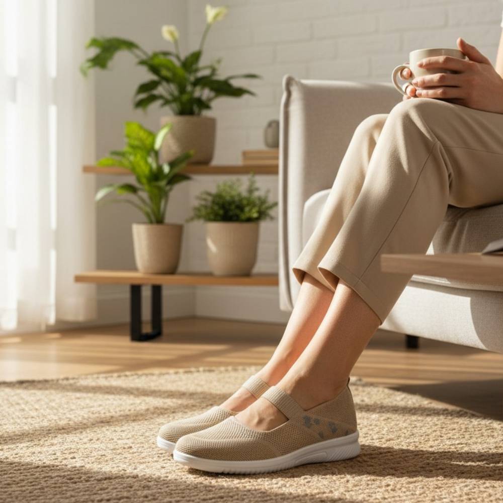 Ανατομικά sneakers με ελαστικό πλεκτό επάνω μέρος μπέζ