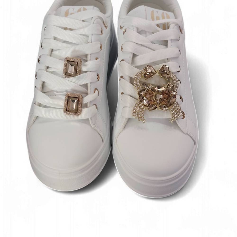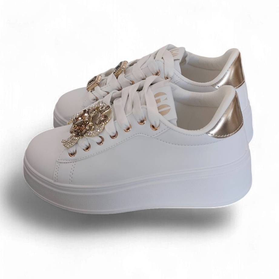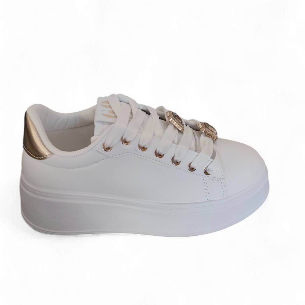 Αθλητικά λευκά δερματίνη με χρυσές λεπτομέρειες και αποσπώμενα διακοσμητικά
