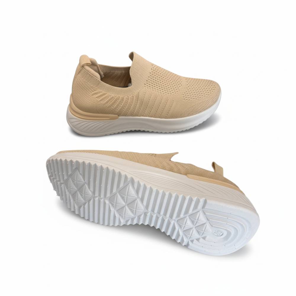 Γυναικείο Sneaker σε μπέζ χρώμα κατασκευασμένο από ελαστική κάλτσα για εύκολη και γρήγορη εφαρμογή.