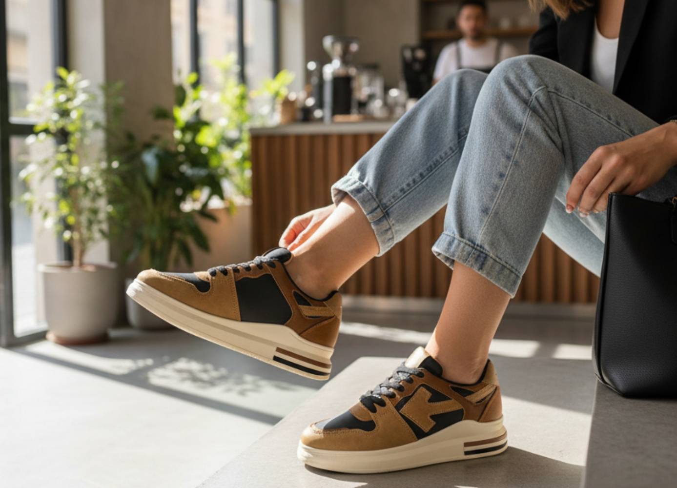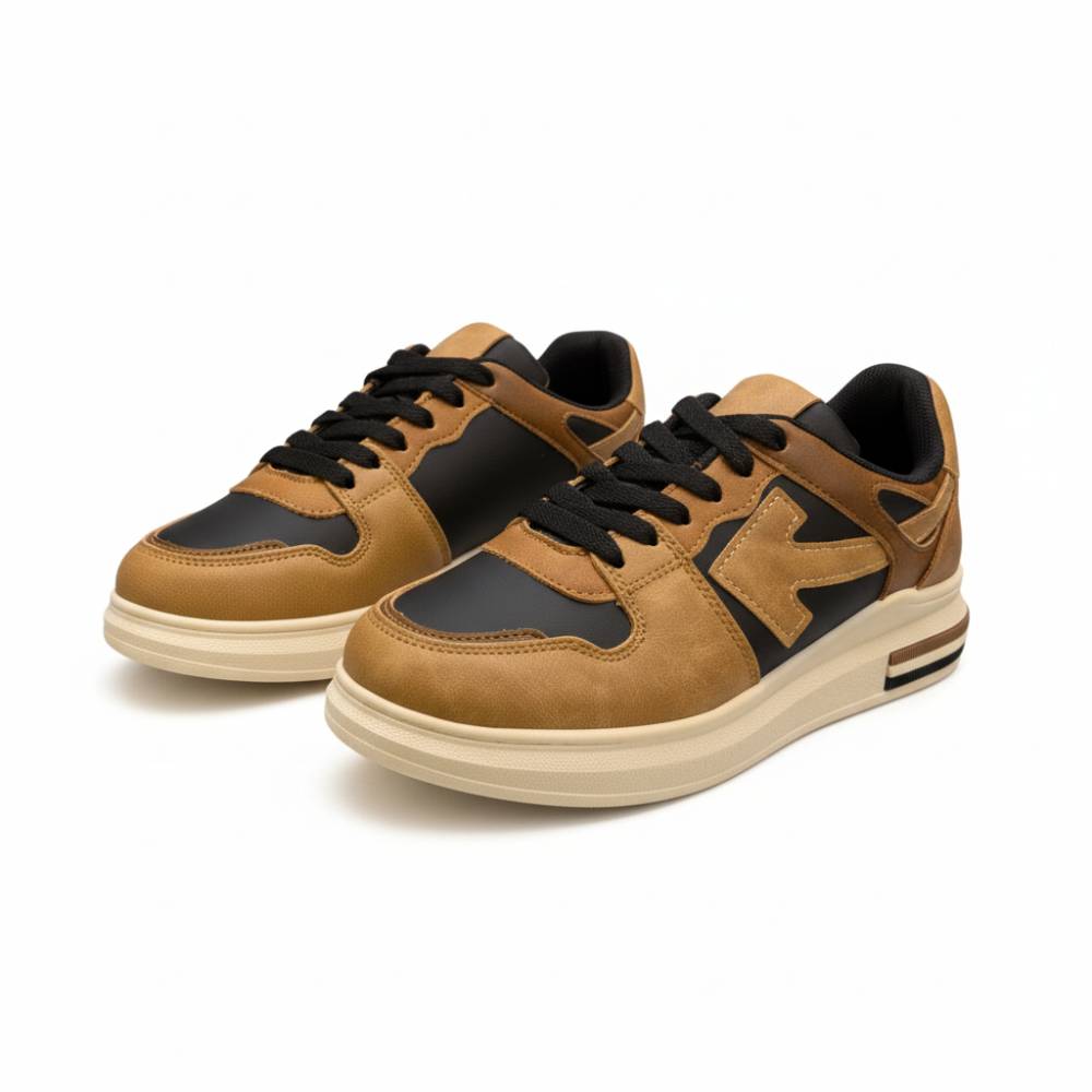 Γυναικεία sneakers μαύρα με καφέ και μπέζ χρωματισμούς
