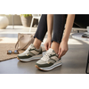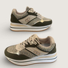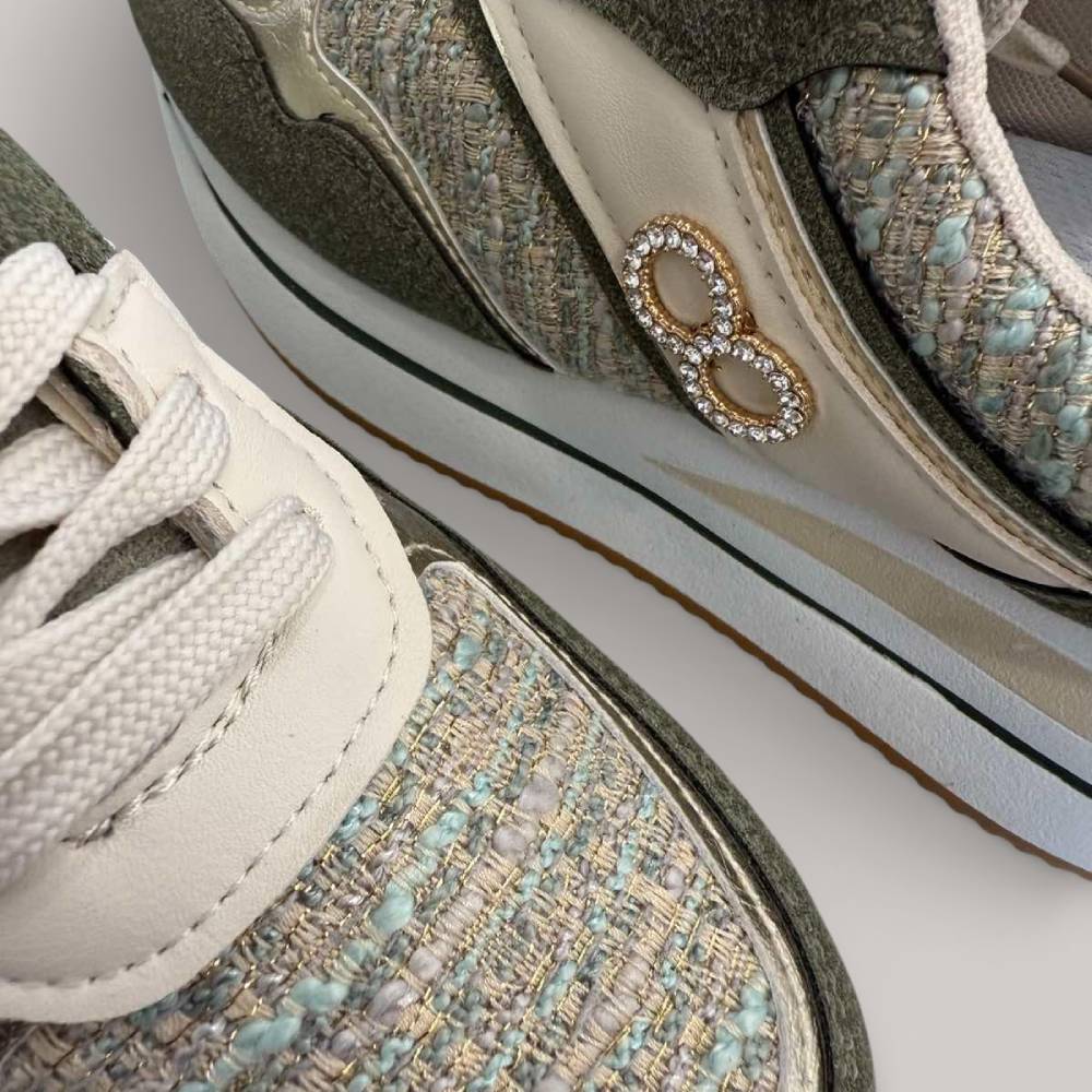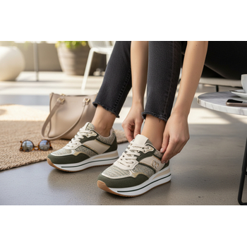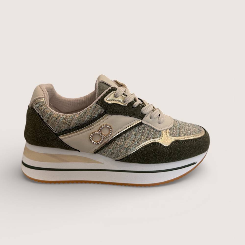 Sneakers δίπατα με strass αγκράφα λαδί -