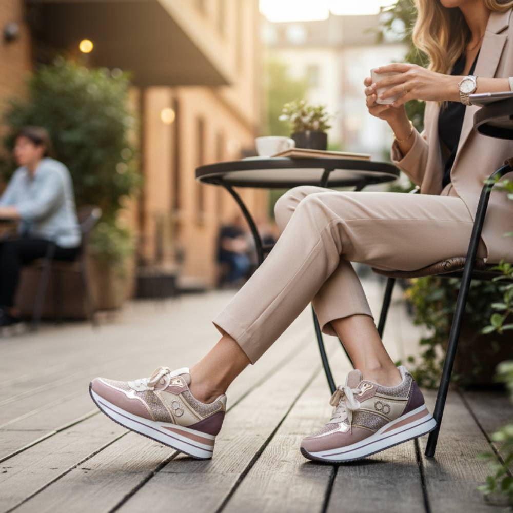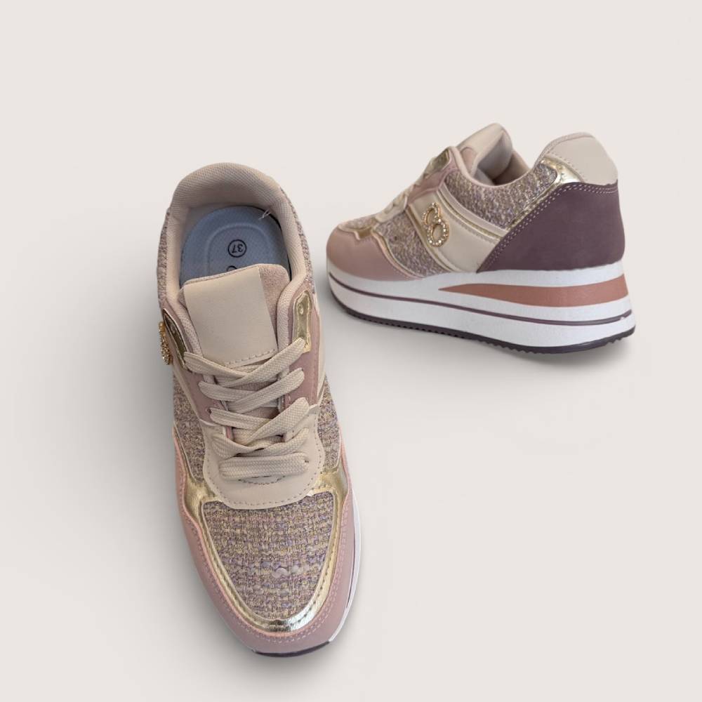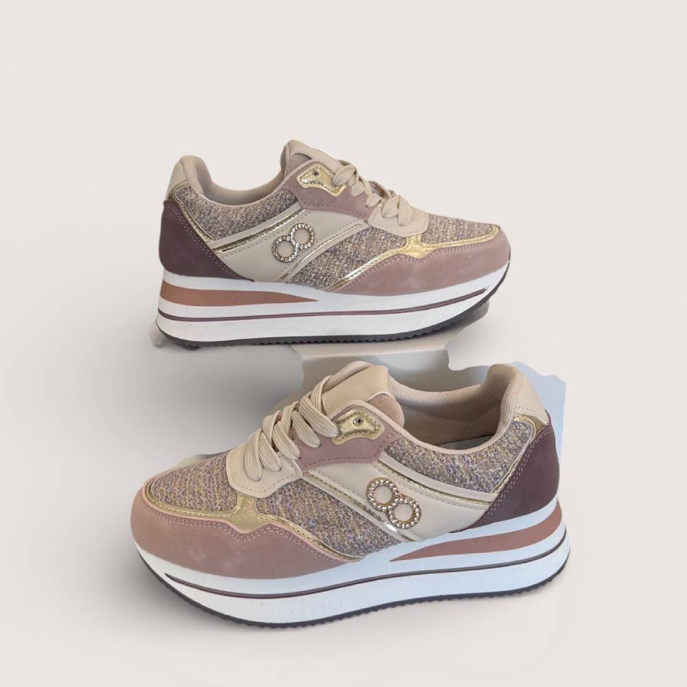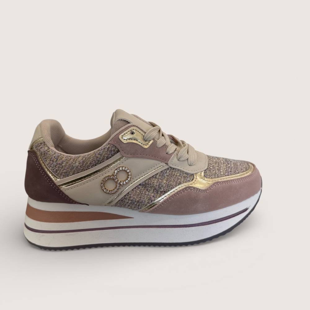 Sneakers δίπατα με strass αγκράφα μωβ -