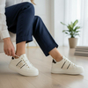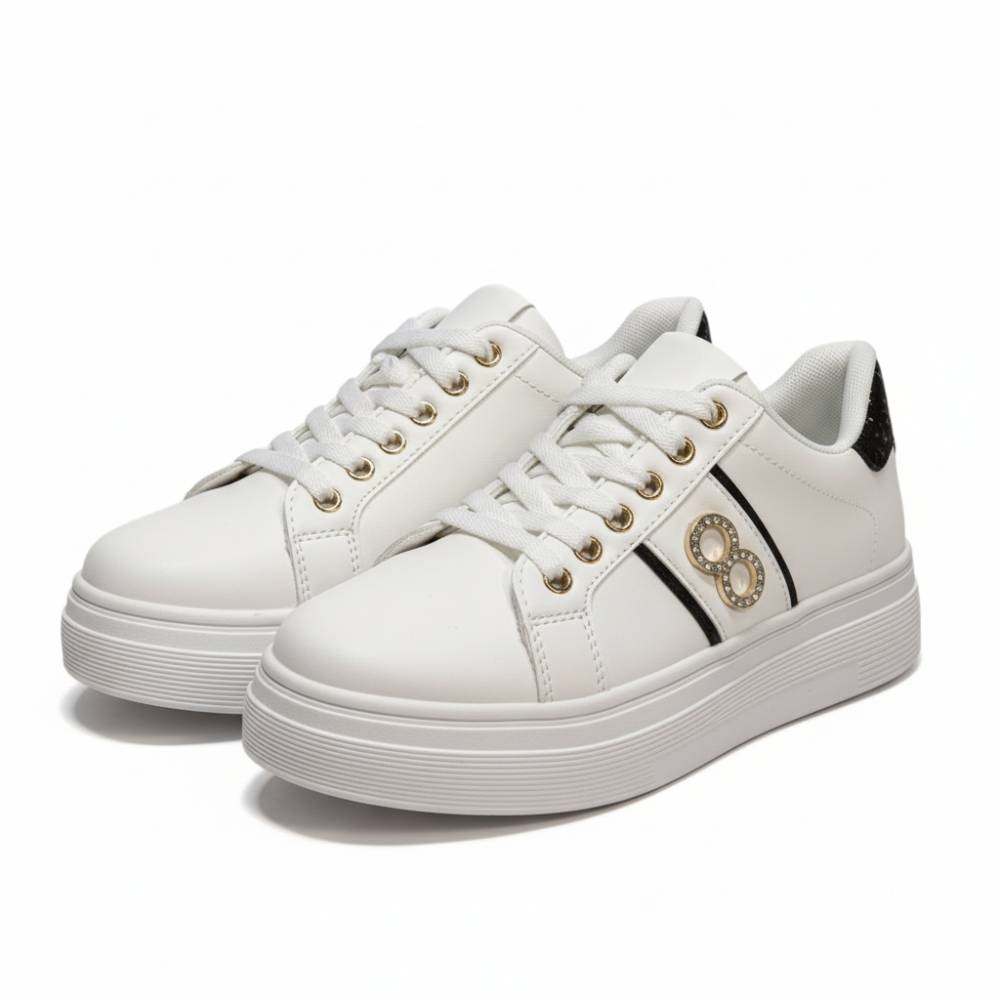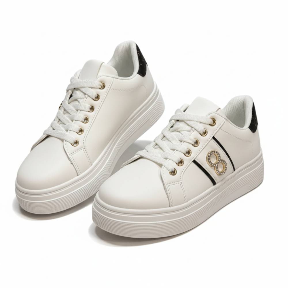 Sneakers λευκά δερματίνη με χρυσές λεπτομέρειες -
