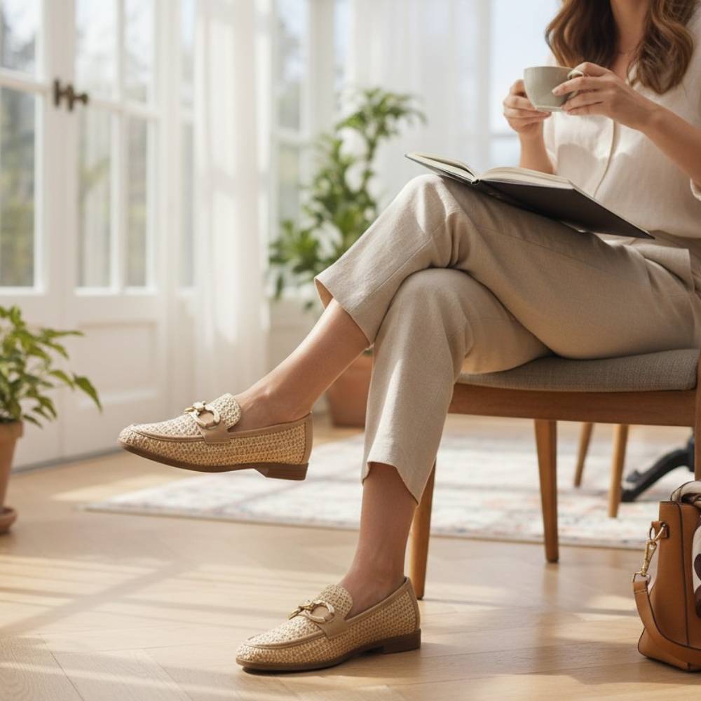 Γυναικεία μοκασίνια Verde σε μπεζ χρώμα ψάθα -